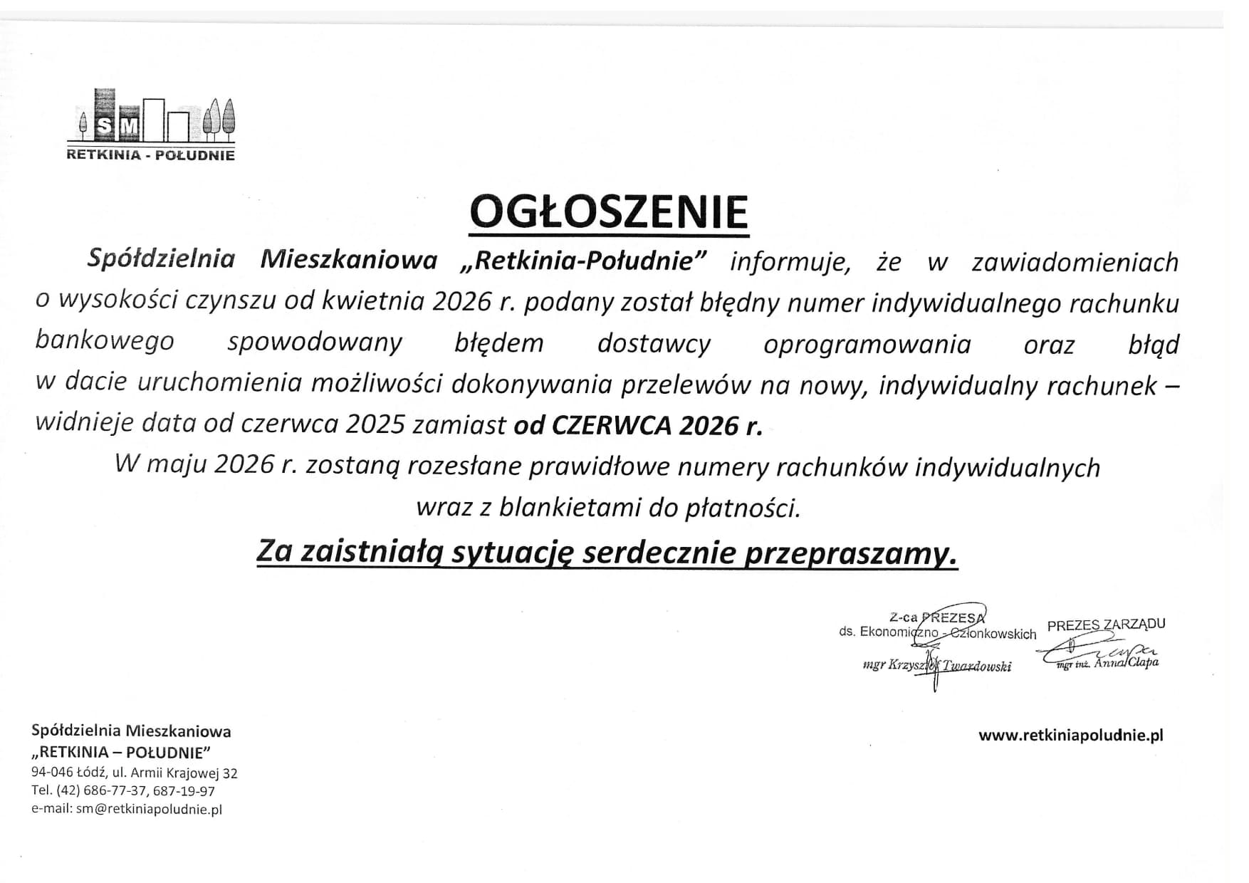 Szanowni Państwo, awarie które wystąpią poza godzinami pracy S.M. Retkinia – Południe prosimy zgłaszać do Pogotowia technicznego „PRYM” (42)640-41-05